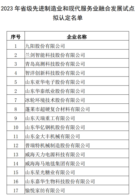 按照《山東省發展和改革委員會關于開展第四批先進制造業和現代服務業深度融合發展試點企業申報工作的通知》(魯發改服務〔2023〕772號)有關要求,在各市發展改革委審核推薦的基礎上,省發展改革委組織開展了山東省2023年省級先進制造業和現代服務業融合發展試點評審認定工作,經第三方評估,提出了擬認定的17家試點企業名單(見附件)。為進一步增強工作透明度,接受社會監督,現對名單予以公示。