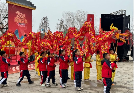 1月18日,平均年齡只有6歲的兩支幼兒舞龍隊,亮相2024春節山東鄉村文化旅游節暨山東省“冬季黃河大集”臨清分會場啟動儀式。