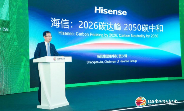 10月16日,2024ESG全球領導者大會在上海舉行,來自全球40個國家和地區的頂級專家學者以及企業家代表溝通探討ESG前沿議題。海信集團董事長賈少謙在發表主題演講時,首次對外公布海信雙碳目標:基于在低碳領域的實踐經驗、技術積累及未來規劃等測算,海信將“不晚于2026年實現運營碳達峰,不晚于2050年實現運營碳中和”。