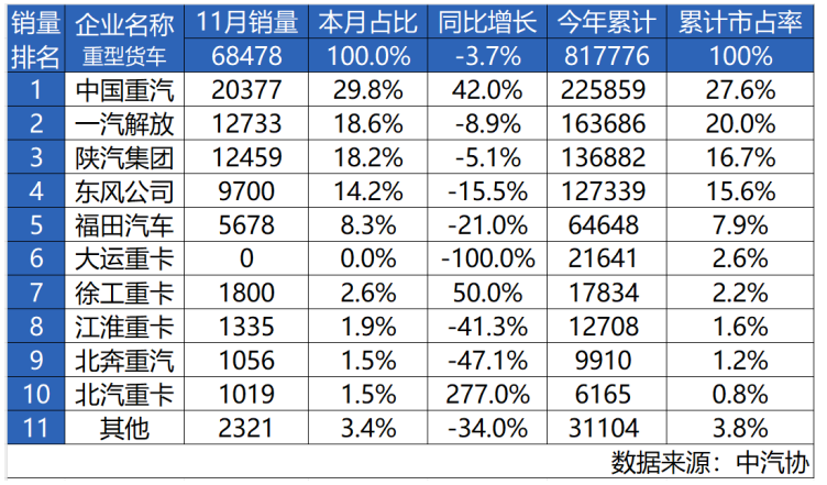 2024年11月,我國(guó)重卡行業(yè)迎來(lái)下半年的歷史性轉(zhuǎn)折,同比下降趨勢(shì)顯著減緩,展現(xiàn)出市場(chǎng)復(fù)蘇的強(qiáng)勁脈搏。當(dāng)月,我國(guó)重卡銷售68478輛,環(huán)比10月銷量提升3.2%,同比小幅下降3.7%,整體態(tài)勢(shì)積極向好。這不僅標(biāo)志著市場(chǎng)環(huán)境逐步回暖,更預(yù)示著重卡行業(yè)將迎來(lái)新的發(fā)展階段。
