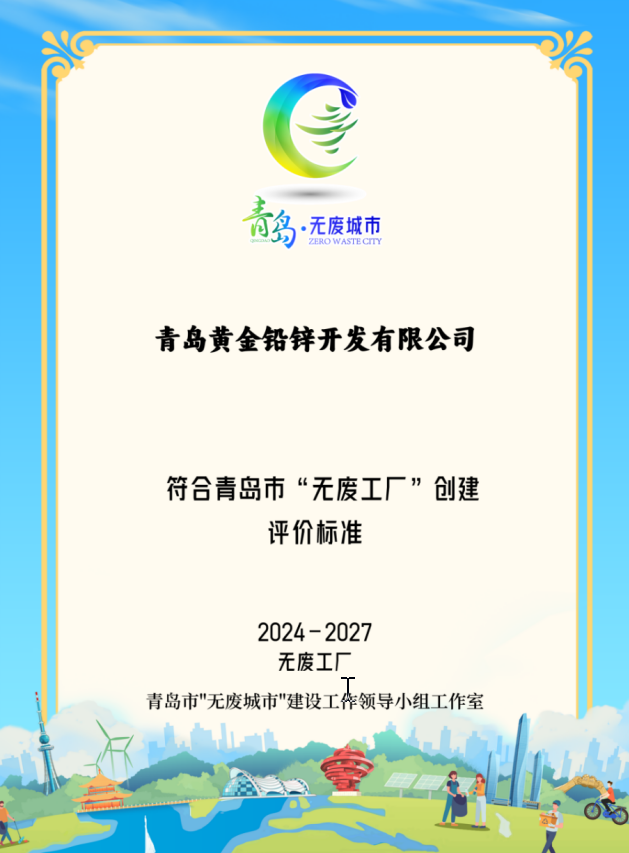 經過努力,青島鉛鋅公司相繼榮獲“國家級綠色工廠”、“青島市生態環境教育基地”、“山東省十大創新力企業”等榮譽稱號,成功打造了山東省“無廢工廠”樣板。