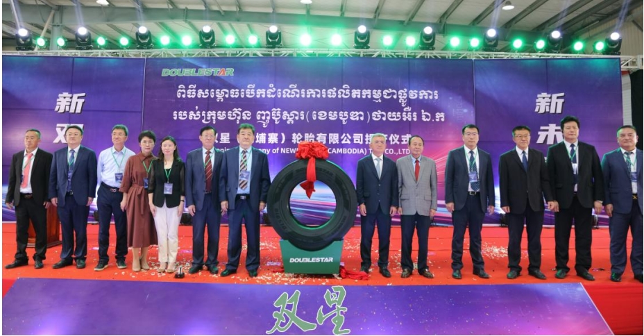 9月6日,雙星柬埔寨輪胎工廠一期項目投產儀式在柬埔寨桔井省經濟特區隆重舉行。柬埔寨發展理事會秘書長謝無敵、柬埔寨桔井省省長瓦拓、雙星集團董事長柴永森、中啟集團董事長張啟榮,柬埔寨政府有關部門的領導、合作伙伴,以及雙星全球的經銷商代表出席活動。