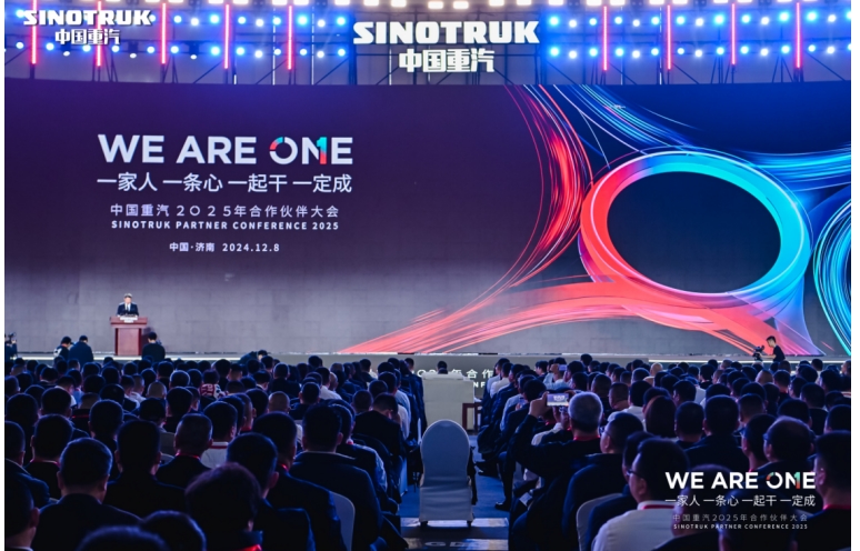 辭舊迎新之際,以“We Are One — 一家人、一條心、一起干、一定成”為主題的中國重汽2025年合作伙伴大會盛大召開,匯聚了來自全國各地2400名行業精英,更展出了新能源、長途干線、快遞快運等不同領域的車型,全領域、全場景、一站式釋放中國重汽的高精尖技術和細分場景產品。大會期間,六場新品及標準發布會密集開展,不僅向業界展示了中國重汽對技術革新和產品優化的不懈追求,更彰顯其積極擁抱合作伙伴同心同行、共創輝煌的雄心壯志。