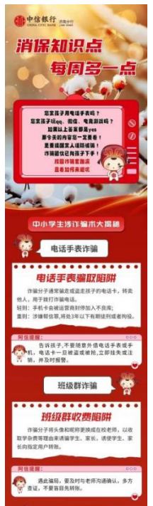 消保知識(shí)點(diǎn) 每周多一點(diǎn) 中信銀行濟(jì)南分行提醒家長(zhǎng)警惕校園詐騙