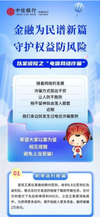 以案說險小貼士 中信銀行濟南分行揭露電信網絡詐騙常用手段