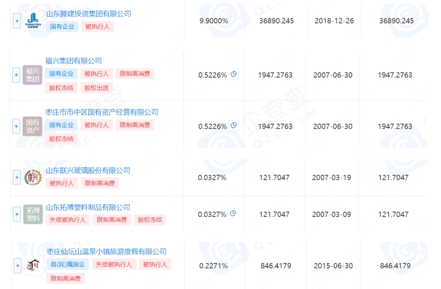 根據(jù)企查查提供的信息,截至目前,棗莊銀行已有4家股東被法院列為被執(zhí)行人,分別是山東滕建投資集團(tuán)有限公司、棗莊市市中區(qū)國(guó)有資產(chǎn)經(jīng)營(yíng)有限公司、福興集團(tuán)有限公司、山東聯(lián)興玻璃股份有限公司。該行還有3家股東被法院列為失信被執(zhí)行人,分別為山東拓博塑料制品有限公司、山東萬(wàn)戶數(shù)控設(shè)備有限公司、滕州市大地機(jī)床股份有限公司。