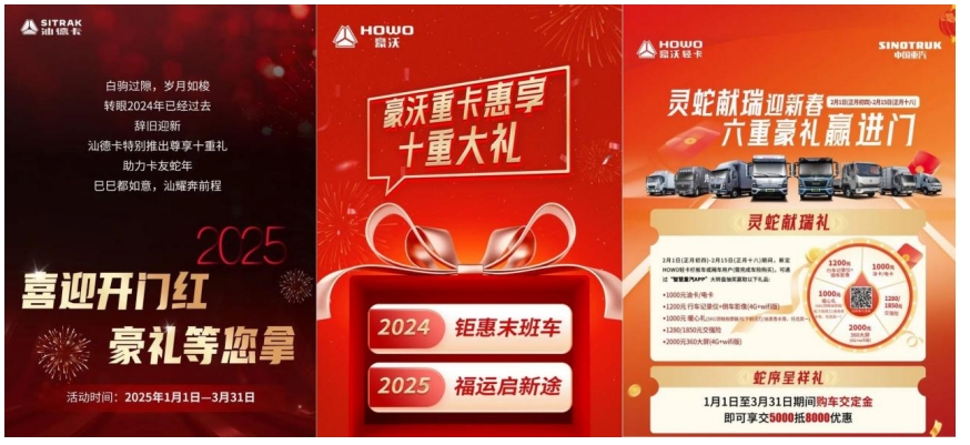 喜迎開門紅 交車不停歇 面對(duì)行業(yè)“雙降”挑戰(zhàn),中國(guó)重汽以雷霆之勢(shì)點(diǎn)燃市場(chǎng)。汕德卡以“十重尊享禮”掀起搶購(gòu)熱潮,豪沃重卡重磅推出“新春延保禮”、“安心保價(jià)禮”等購(gòu)車特惠,助力客戶開啟財(cái)富之路!HOWO輕卡深刻洞察用戶需求,以“六重豪禮”誠(chéng)意叩響創(chuàng)富之門。這場(chǎng)開年?duì)I銷攻堅(jiān)戰(zhàn)的背后,既是品牌對(duì)市場(chǎng)趨勢(shì)的敏銳把握,更是企業(yè)與用戶之間的雙向奔赴。辭舊迎新之際,中國(guó)重汽以新春賀歲系列短劇《最美全家福》為筆,書寫卡友與家人之間的溫情故事,為寒冬中的物流人送上了一份暖意融融的“新春賀禮”。正是這份對(duì)產(chǎn)品品質(zhì)的堅(jiān)持和以客戶為中心的服務(wù)理念,讓中國(guó)重汽在市場(chǎng)上贏得了廣泛的認(rèn)可,從而掀起一波又一波的交付熱潮。