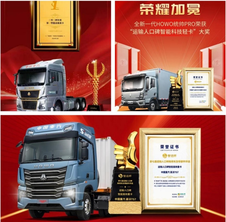 狂攬權(quán)威獎(jiǎng) 品質(zhì)鑄輝煌 中國(guó)重汽的領(lǐng)跑之勢(shì),源自對(duì)技術(shù)的極致追求。中國(guó)重汽汕德卡C9H牽引車一連斬獲三項(xiàng)大獎(jiǎng),被授予“重卡高效之王”、2024年度“第一智能高端重卡”、“卡車兄弟推薦產(chǎn)品”等榮譽(yù)稱號(hào),車輛憑借節(jié)能高效、勁無(wú)止境的硬核性能征服市場(chǎng),再次刷新國(guó)產(chǎn)高端重卡的“天花板”。豪沃TS7牽引車不負(fù)眾望,榮獲2024年度“第一高效大馬力重卡”和“運(yùn)輸人口碑智能高效重卡”稱號(hào),彰顯其在行業(yè)內(nèi)的領(lǐng)先地位與卓越品質(zhì)。在輕卡領(lǐng)域,HOWO統(tǒng)帥PRO一馬當(dāng)先,憑借出色的智能科技應(yīng)用、高效的動(dòng)力性能以及極致的用戶體驗(yàn),連續(xù)斬獲“運(yùn)輸人口碑科技創(chuàng)富輕卡”、“年度影響力車型”、“全維領(lǐng)先獎(jiǎng)”、“2024年度第一智能輕卡”等殊榮,備受行業(yè)矚目。