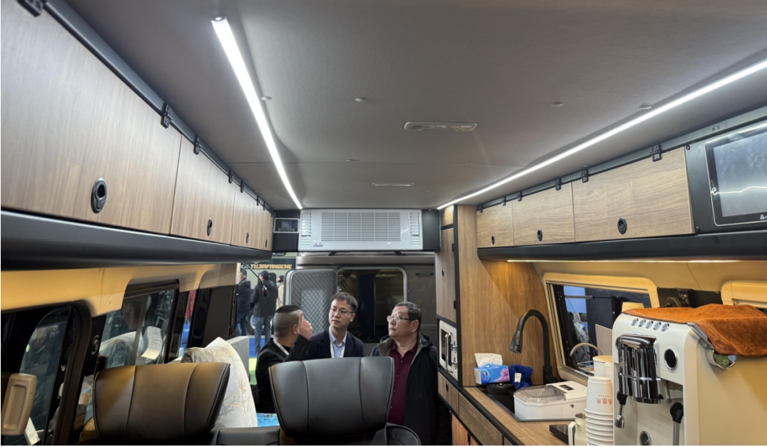另一款旅居車由中國重汽旗下首款輕客先鋒官V改裝而來,以“我行我宿我自由”為核心理念。搭載濰柴2.0T柴油機+8AT黃金動力鏈,最大功率115kW,最大扭矩400N·m,超強動力性能,自在出行,探索更多心馳神往的遠方。采用雙層疊欄式電動升降硬頂設(shè)計,頂部折疊床,大幅拓展車內(nèi)空間,提升整體性、安全性與穩(wěn)定性;配備對向卡座、廚房吧臺、一體式衛(wèi)生間、柴暖、電磁爐、50L車載冰箱、10L熱水器、120L清水箱、40L灰水箱,并專享車載wifi、投影儀與品質(zhì)音響,打造豪華旅居體驗,外出亦如家舒適。不懼限高,低頂可下地庫,既能旅居于郊野,也能探索城市煙火。